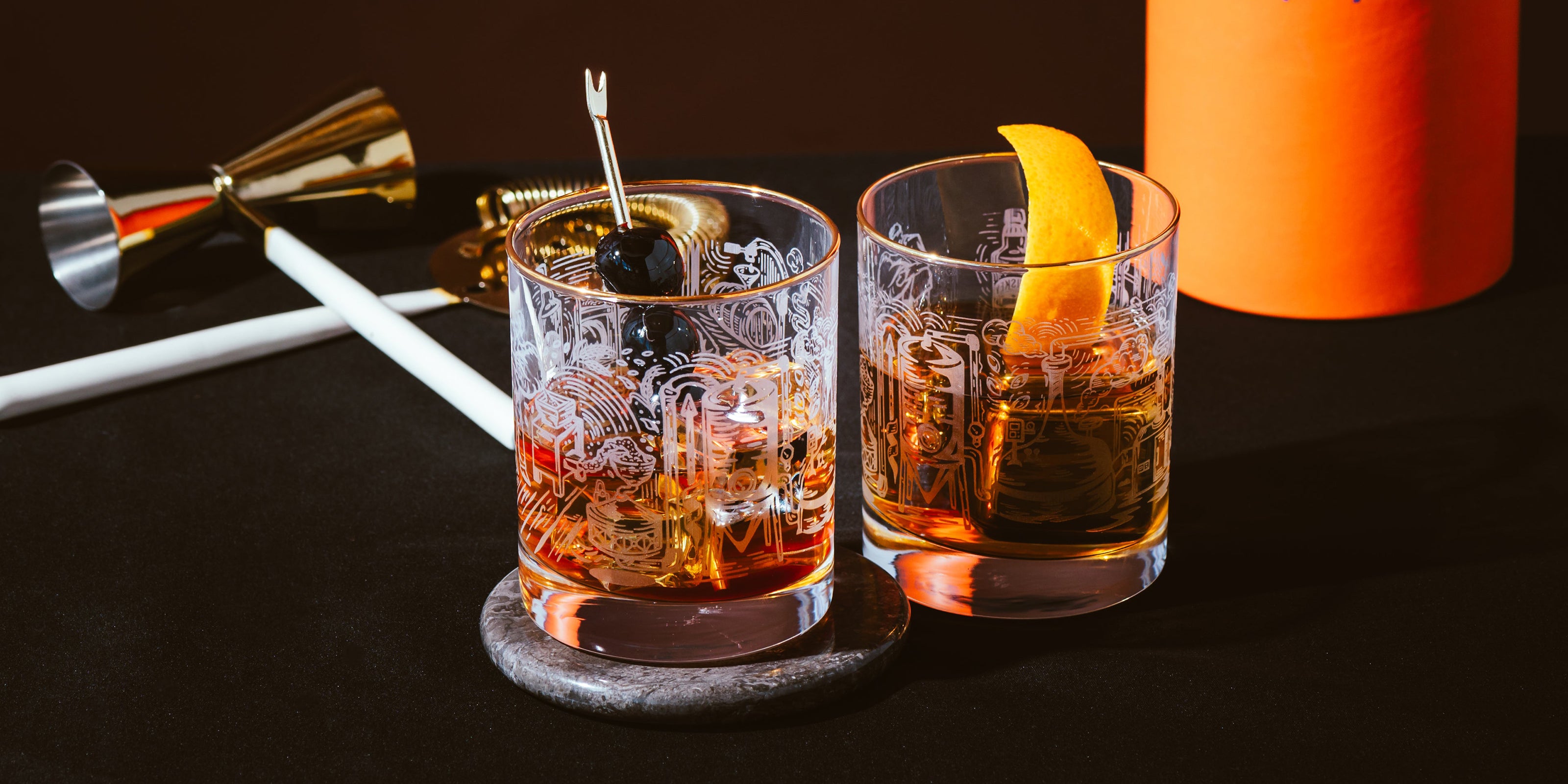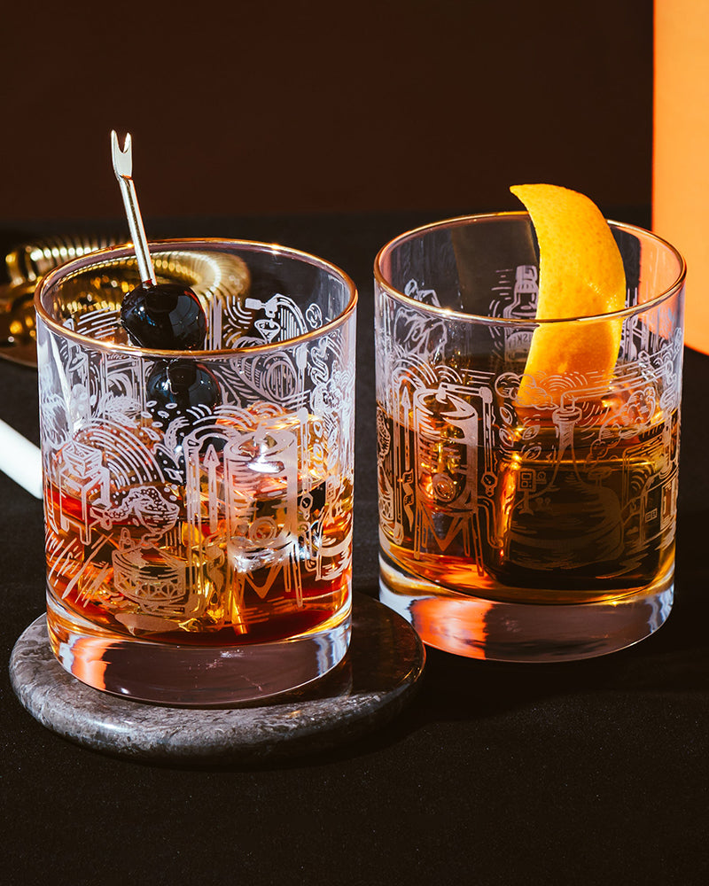 Glasses with Engraved Whiskey Making Process Set of 2
